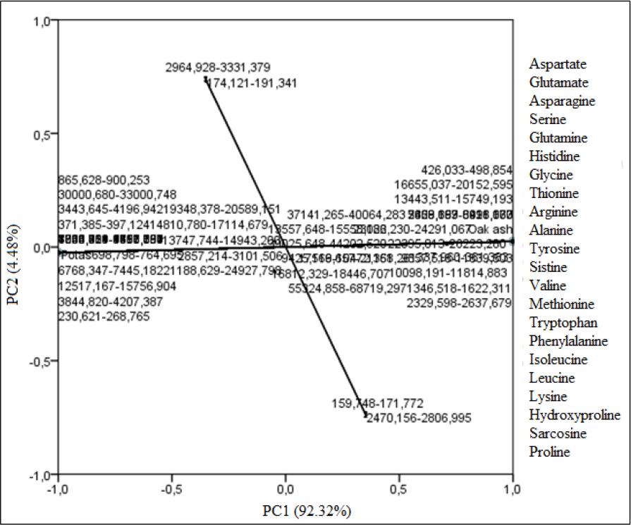 | Free Amino acids (pmol μL−1 DW) | Oak Ash | Dipping solutions Potassium Carbonate | P-value |