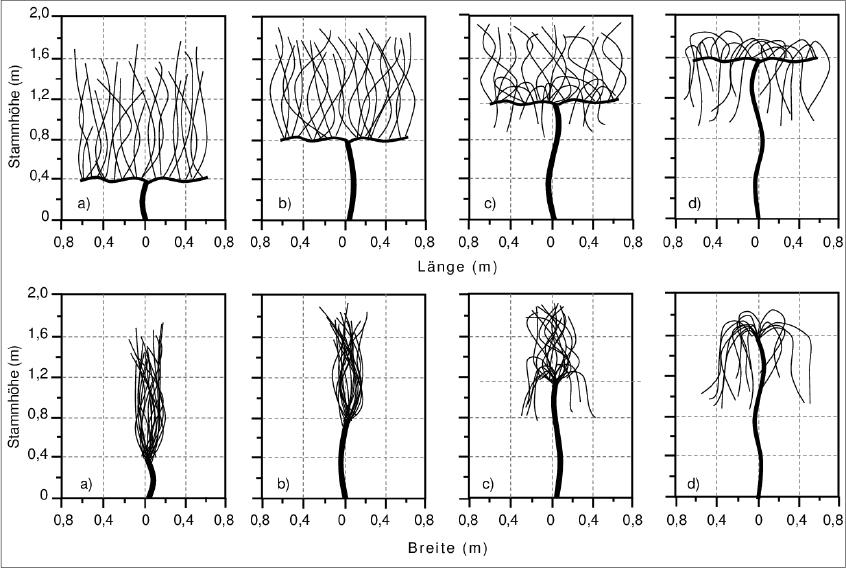 | Erziehungssystem | SF (m2 × 103/ha) | SFe (m2 × 103/ha) | IF |
