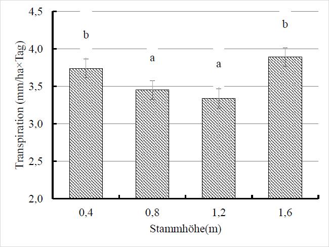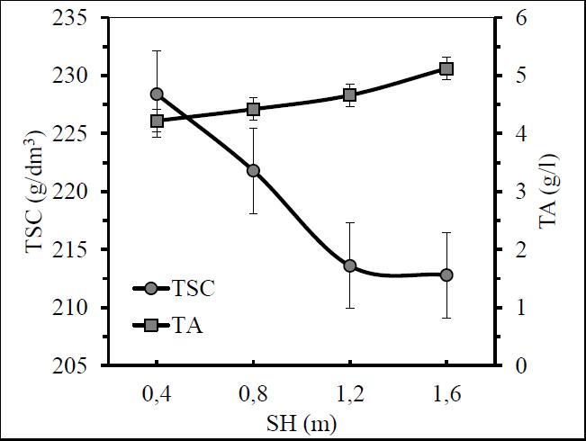 | 1,2 m | 8,9 ±0,4 b | 6,8 ±0,2 ab | 0,77 ±0,02 a |