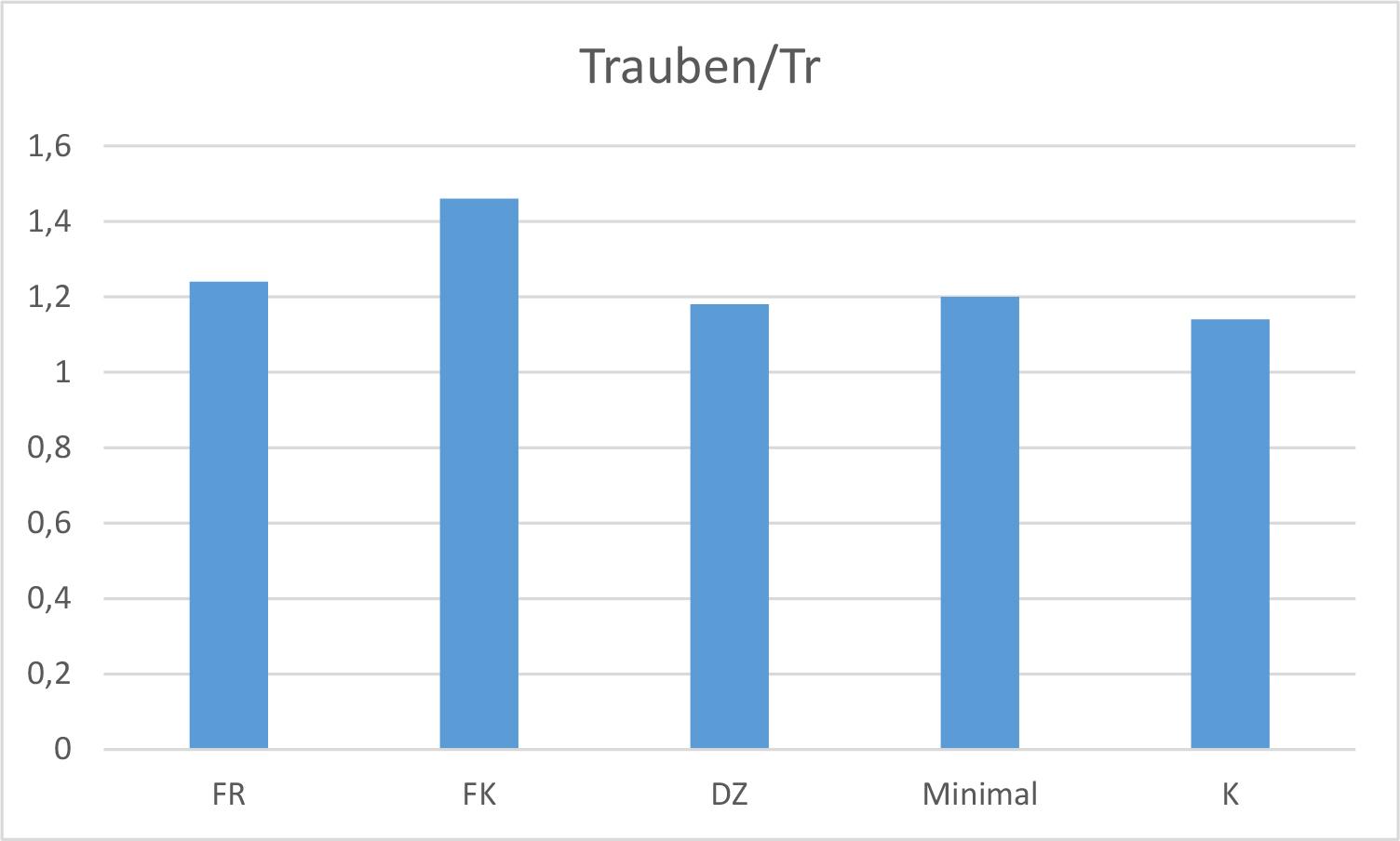 Die durchschnittliche Anzahl an Trauben pro Trieb und Schnittmethode