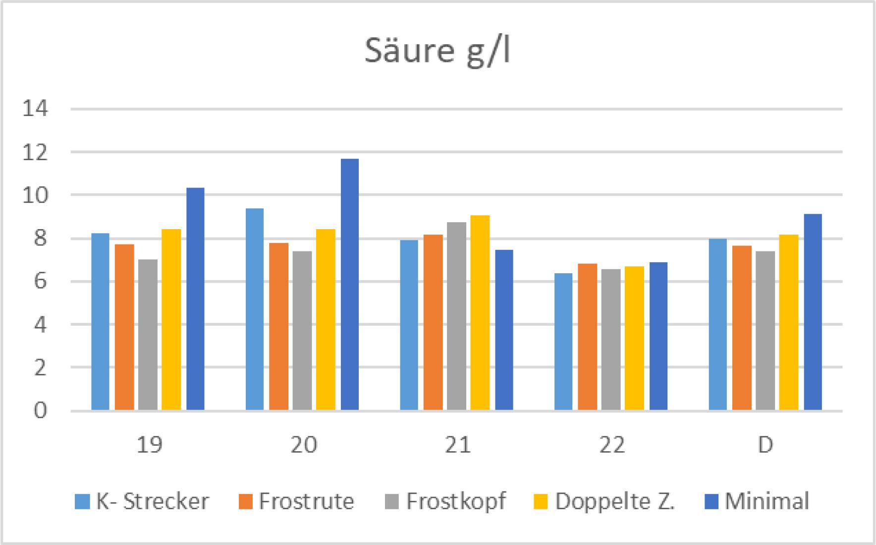 Gesamtsäuregehalte zum Erntezeitpunkt nach Schnittvarianten.