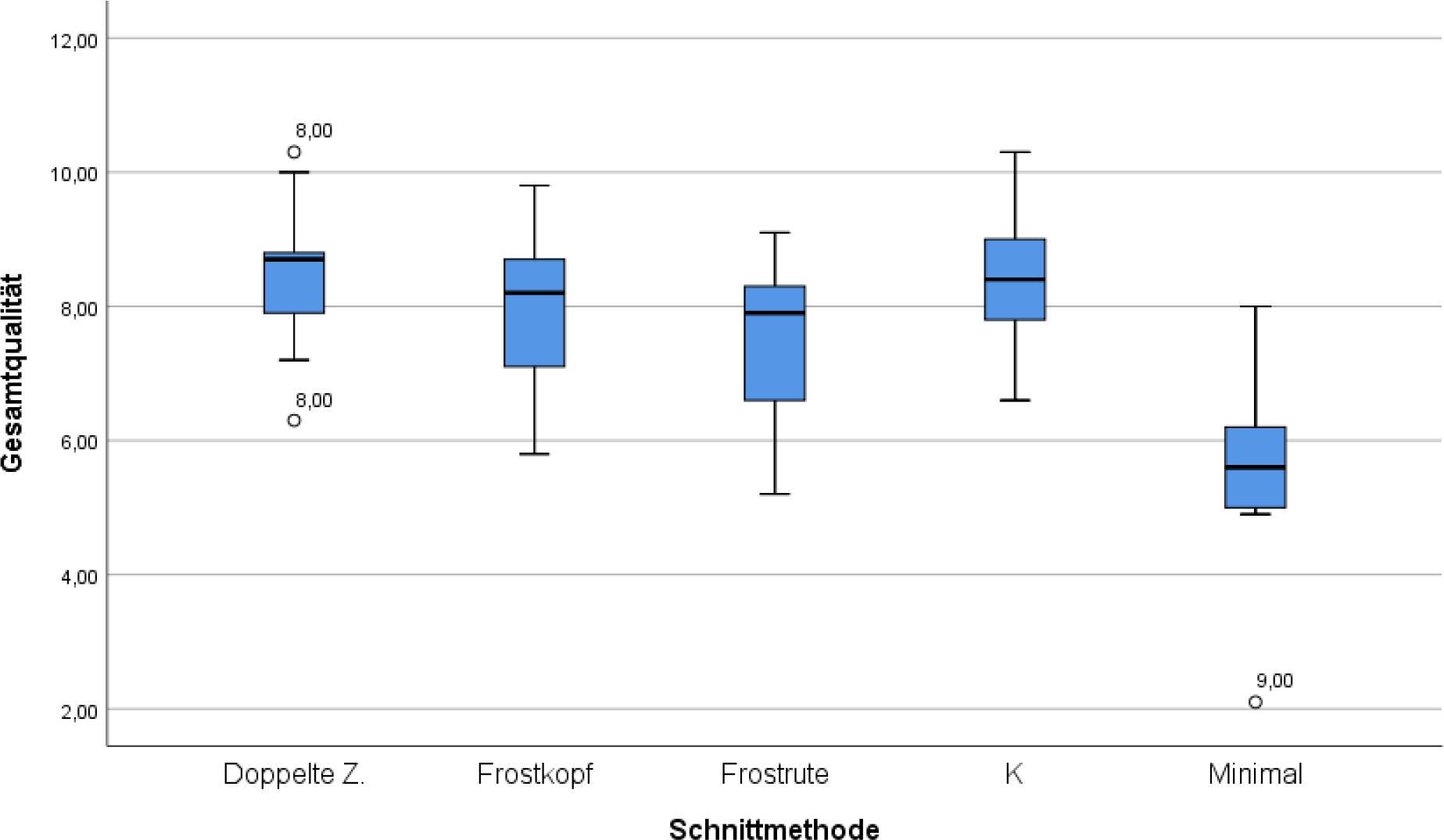 Der Kruskal-Wallis-Test erbrachte eine signifikante Unterscheidung zwischen Kontrolle und den alternativen Schnittmethoden im Jg. 2019.