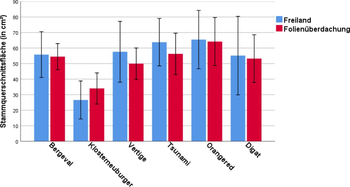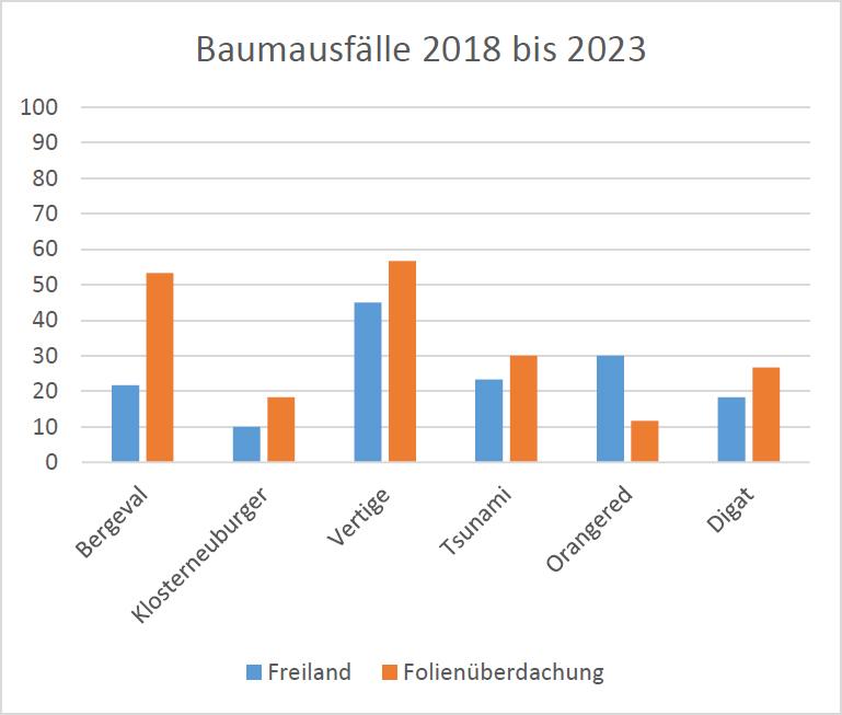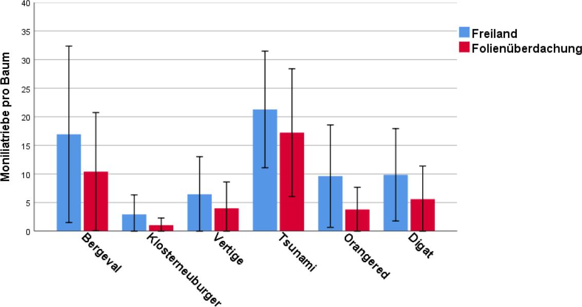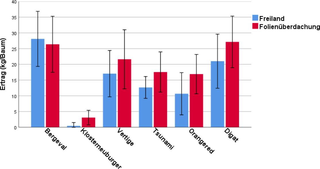 | 2019 und 2020 | Vor der Blüte | Kupferpräparate | Gleicher Pflanzenschutz wie im Quartierteil “Freiland” |