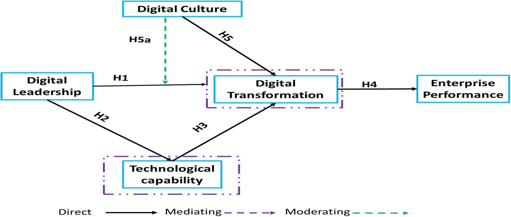 Hypothesis 5a. Digital culture moderates the link between digital leadership and digital transformation.