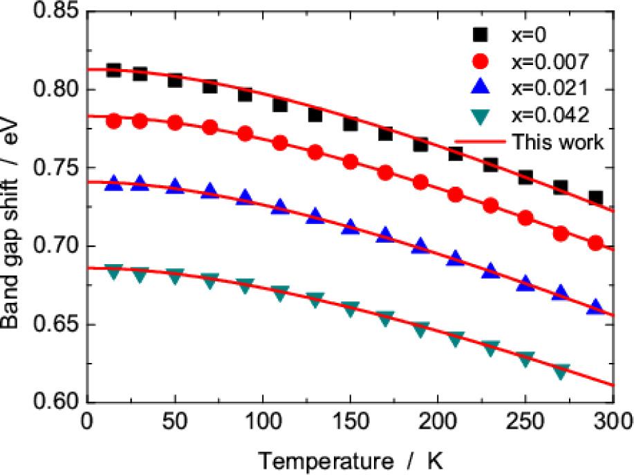 | Bi fraction x | γ (meV/K) | Eg(0) (eV) | σ (meV) |