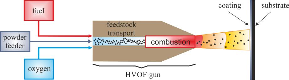In the field of surface engineering, thermal spraying is a well-known technique employed in order to deposit various types of protective coatings that are used in a wide range of industrial branches [1,2,3]. Depending on the application, different coating manufacturing processes could be selected: flame [4, 5], arc [6, 7], plasma [8, 9] or cold spray [10, 11]. Among them, high-velocity oxy-fuel spraying (HVOF) is the primary method used to deposit hard, wear-resistant coating that exhibits both corrosion and erosion resistance [12, 13]. In this technique, gas combustion is used as an energy source that melts and accelerates powder particles.