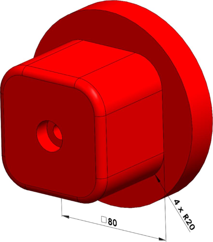 The goal of the tests presented in this article is to develop innovative methods of designing spinning trajectories for noncircular products and to determine the influence of trajectory on the height of the drawpiece obtained, with particular differentiation between spinning and shear forming of a product with a noncircular cross-section. Two mandrels were used for tests with the purpose of designing a spinning trajectory: (1) in the shape of an ellipse with dimensions of 60 mm × 80 mm and (2) in the shape of a square with dimensions of 80 mm × 80 mm. CAD models are presented in Figures 4 and 5. Designed trajectories were tested by metal spinning blanks made from aluminum Al 1050 A. The strength of the material was measured at three angles to the rolling directions of aluminum sheet. The properties are presented in Table 1.