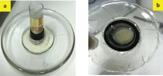 Poured gelatin/AgNPs mixture (a) and peeled off film (b)