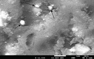 SEM micrograph of fish gelatin mixed with 1.25 mM silver nanoparticles