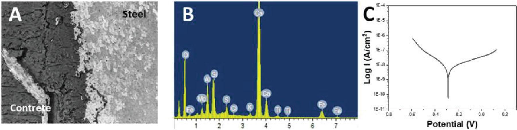 Electrochemical parameters of steel at the interface