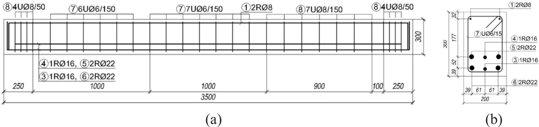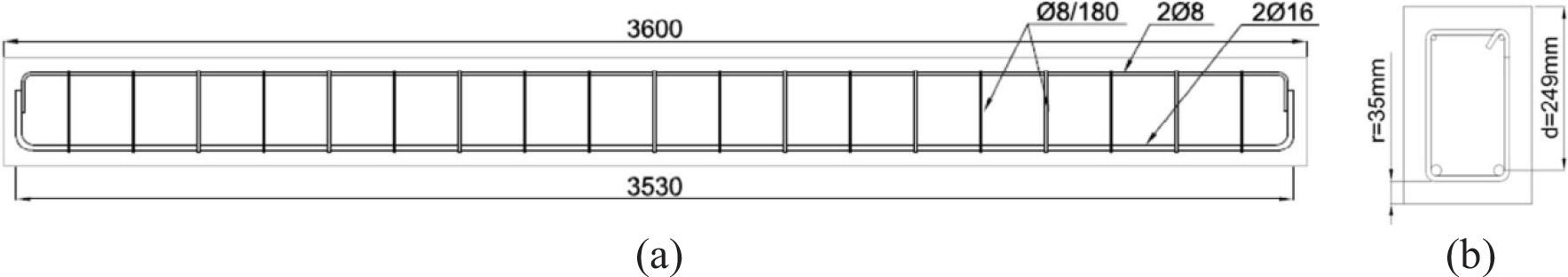 RAC50-3 specimen details: (a) longitudinal-section and (b) cross-section [26]