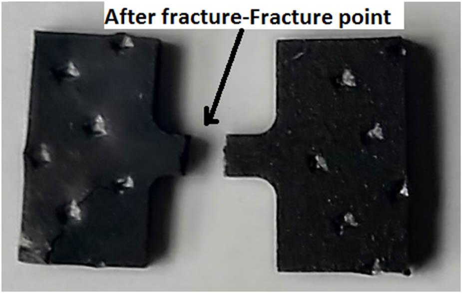 The specimens were held together by screw-action “C” clamp grips with flat serrated surfaces. Small misalignments during the holding cause the specimen to bend or twist. As a result, the specimens were handled and secured between the grips, and the grip nuts tightened while taking care not to damage, distort, or twist the specimens. Despite this, bending was discovered in several of the specimens; hence, the results were disregarded. An extensometer with a 10 mm gauge length was installed on the specimen’s gauge section to quantify micro-tensile strain at equal intervals. The micro-tensile tests and tensile specimens’ size satisfied the E8M standards for tiny specimens. Figure 2 presents the image of the tensile specimen. The micro-hardness property was determined at room temperature with a Mitutoyo MVK-H1 Vickers hardness testing machine with a 5.0 N load for 15 s each indent. Tensile and micro-hardness trials were conducted at room temperature. The micro-hardness tests were performed three times, and the arithmetic mean values were computed. These mean values were then used to determine the actual hardness value.