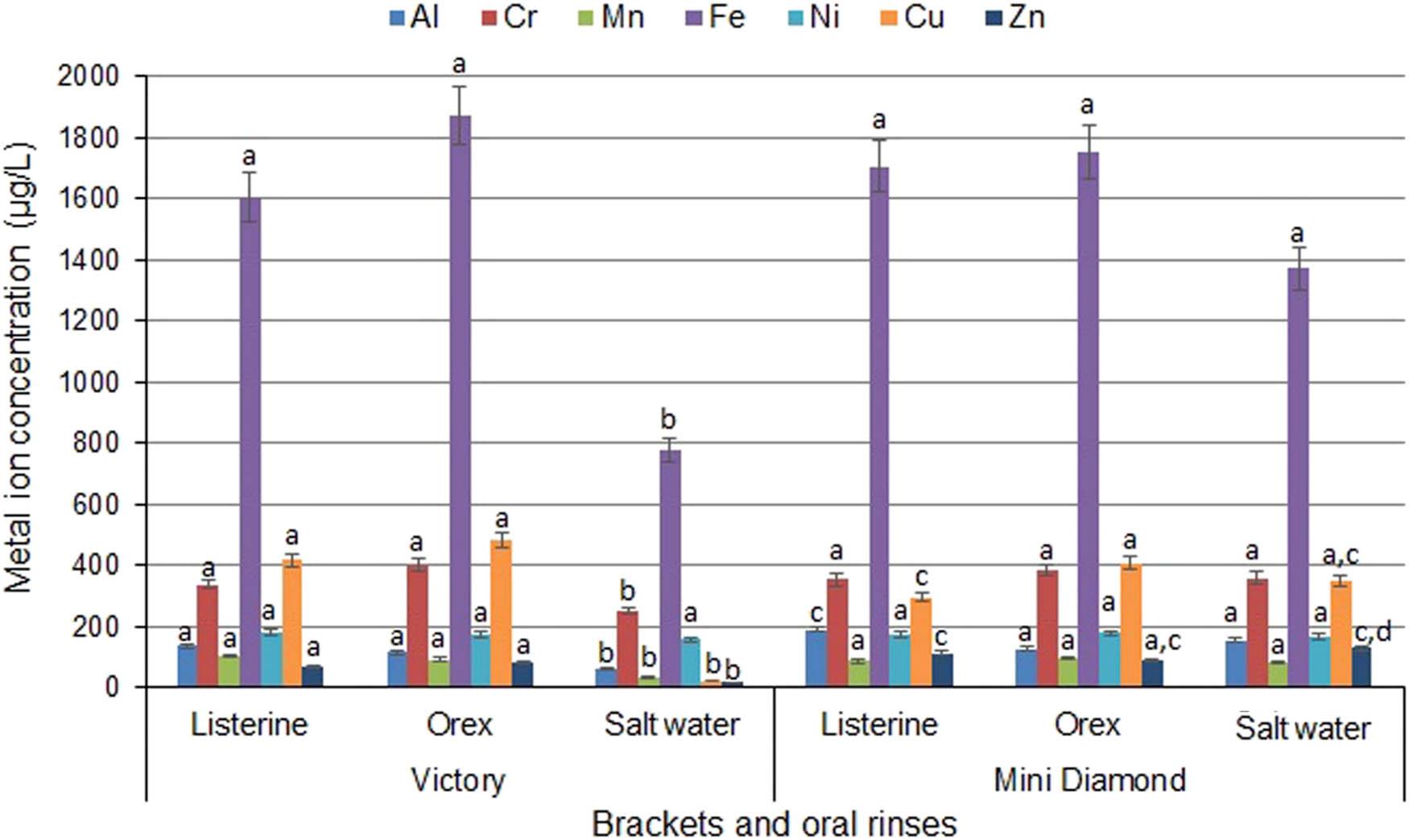 | Oral rinses | Cr | Mn | Fe | Co | Ni | |