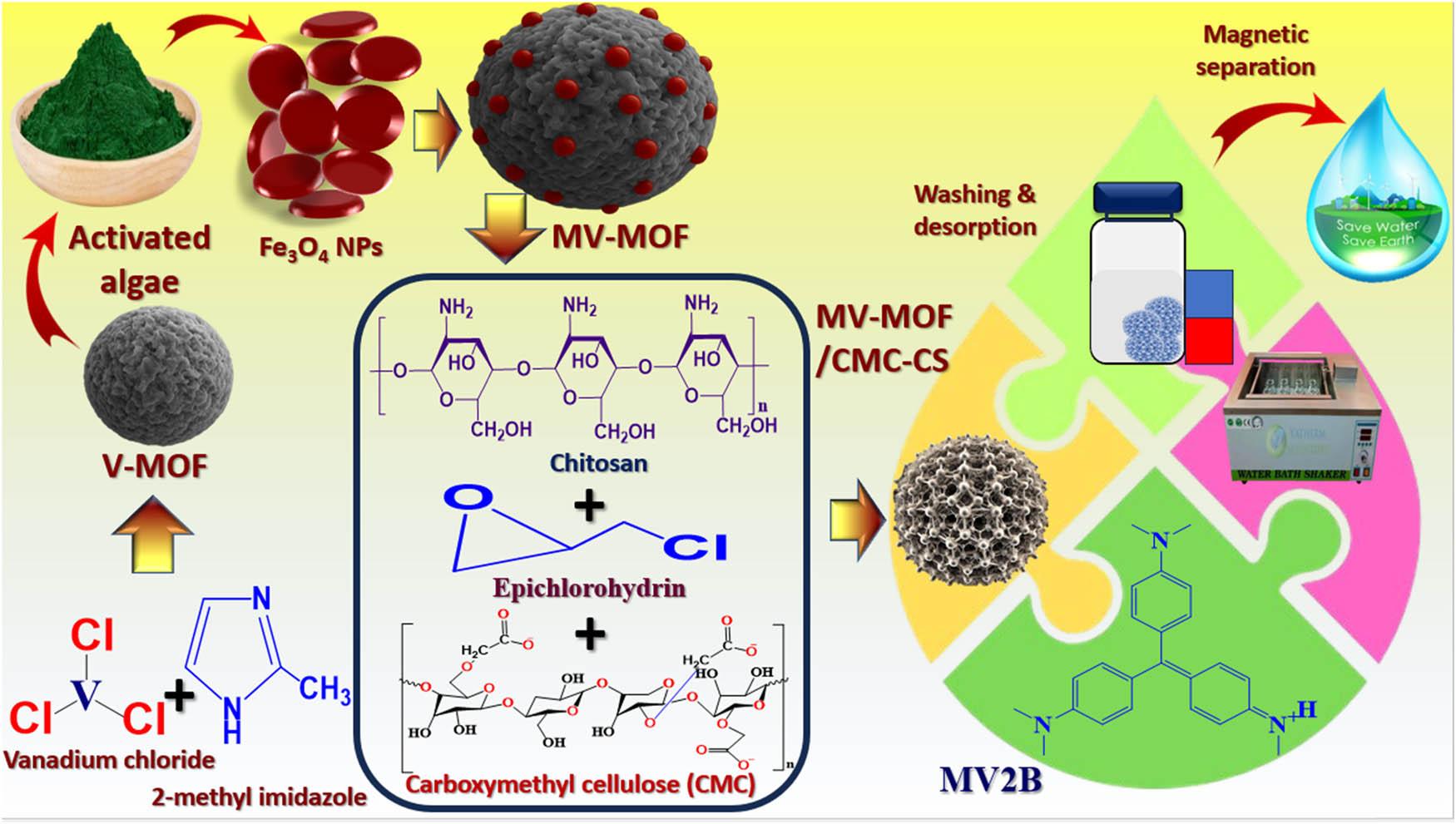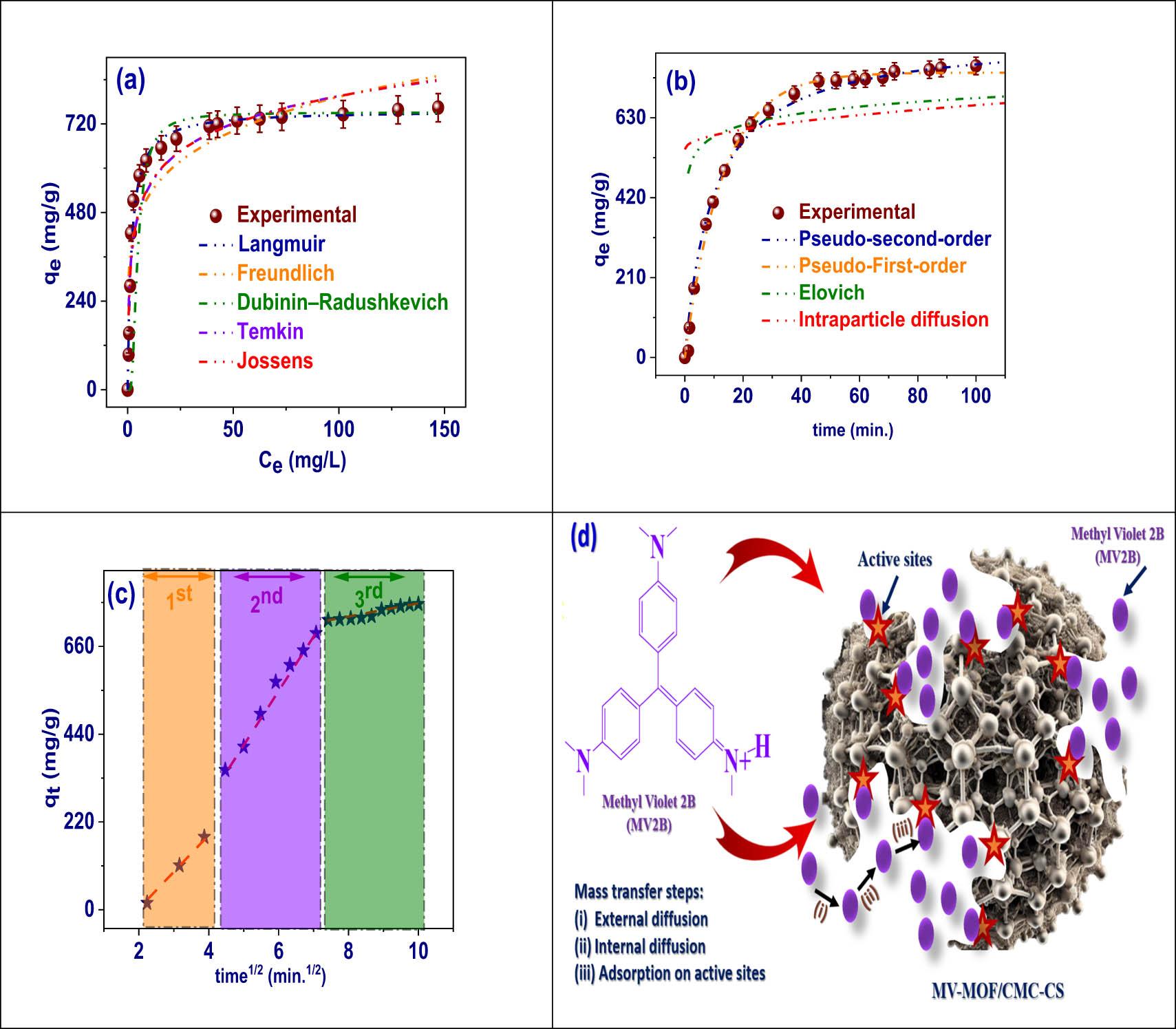 Statistical examination of numerous adsorption models for MV2B dye on the MV-MOF/CMC-CS_