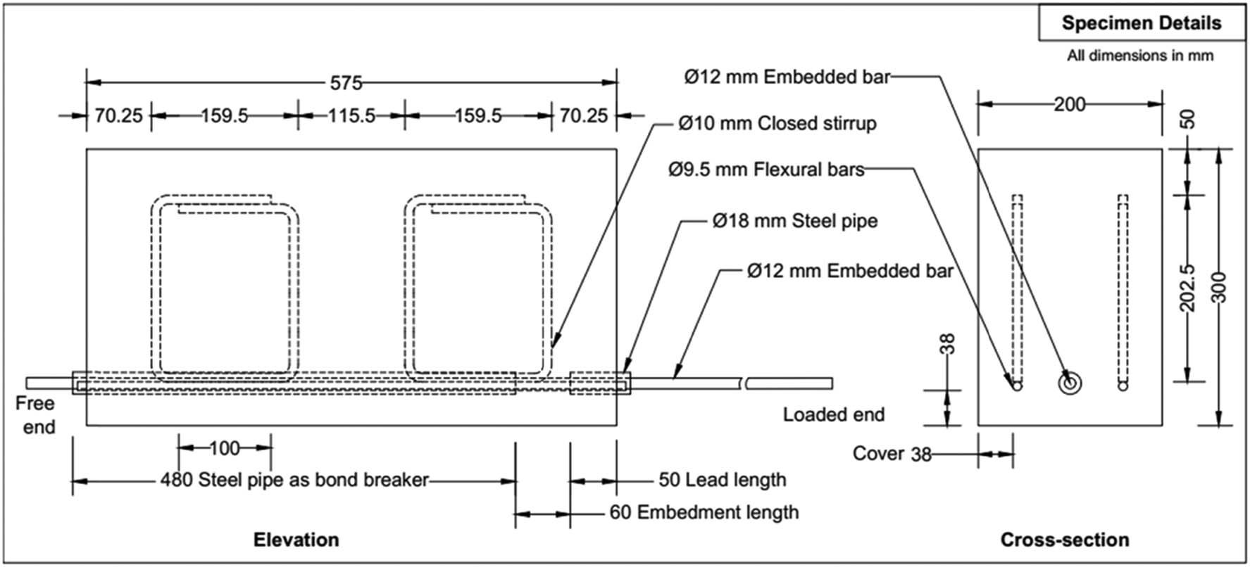 | S. No. | Specimen ID | Volume fraction of steel fibers | Type of test rebar | Diameter of rebar (mm) | Exposure temperature | No. of test specimens |