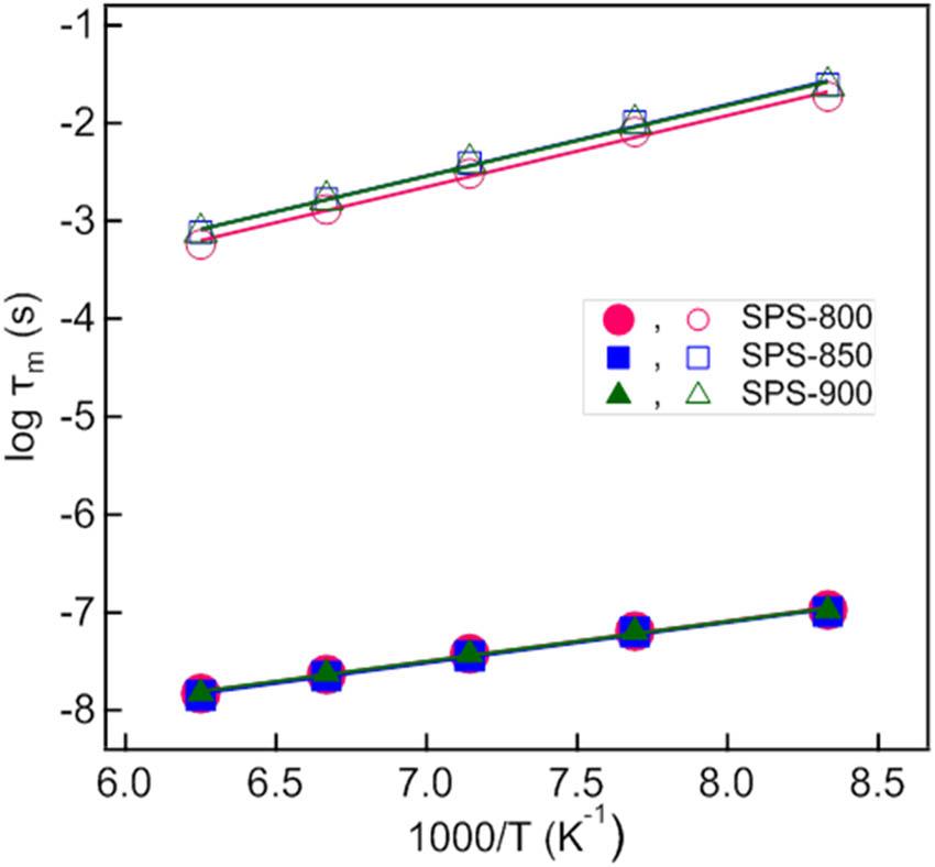 Values of ε′, σ g, and σ gb at RT in addition to the activation energy for the electrical conduction and the modulus relaxation processes in SPS-NBCTO ceramics_