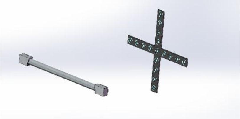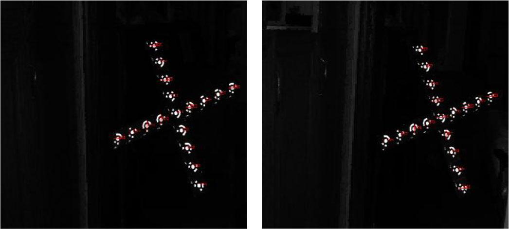The main purpose of the tracking system is to construct a binocular system in conjunction with a multi-line laser system, for real-time tracking and alignment of the multi-line laser system to determine its spatial positional relationship. When calibrating the binocular tracking system, it is therefore essential to consider the factor of a broad field of view. Calibrating a tracking system using the traditional flat plate method can present many challenges. The main difficulty is to create a calibration board that is sufficiently precise to account for such an extensive field of view. This article therefore proposes the adoption of a cross pole-based calibration method, which is easy to make and place within the field of view. The cross pole is equipped with marked points that possess unique codes (see Fig. 5) to ensure the uniqueness of the coding across different positions and angles. By obtaining the three-dimensional coordinates of all coded points on the cross pole in advance using the third-party tools, you can position the pole at multiple locations within the field of view and initiate camera data collection. Then, the central coordinates and code values of all designated points on the cross pole are identified, taking into account their recognized central coordinates from different positions and the corresponding three-dimensional point coordinates on the cross pole. By applying bundle adjustment techniques, the internal and external parameters of the binocular tracking system can be accurately calibrated.