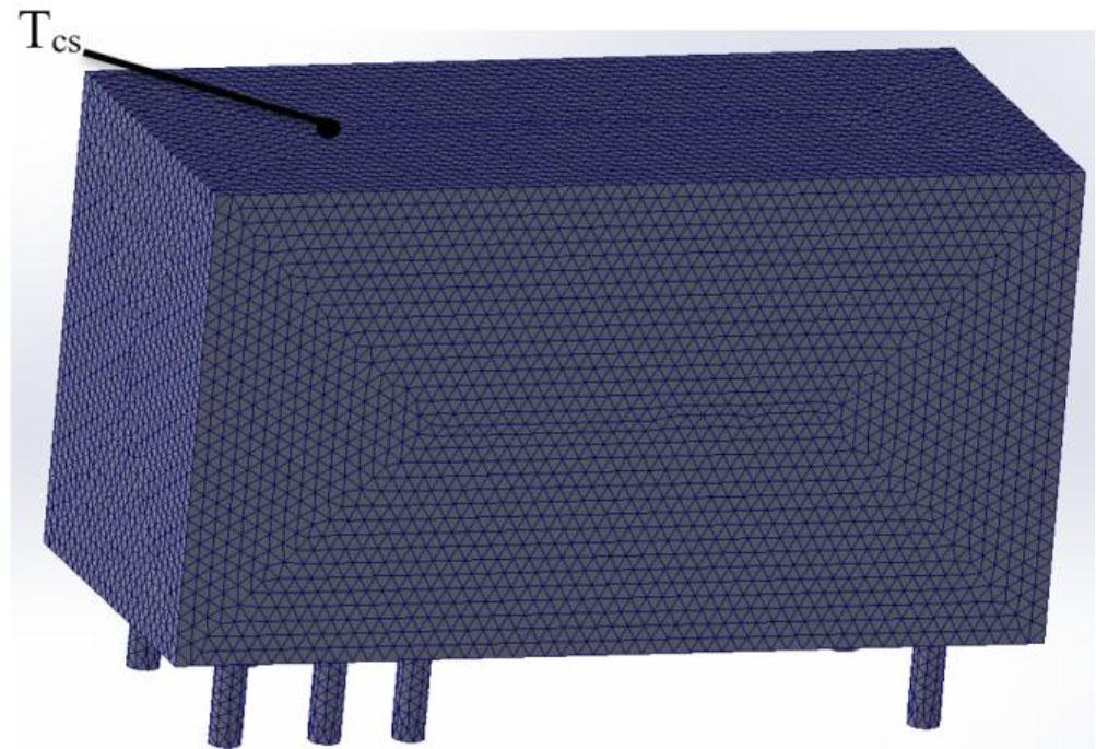 The obtained model, with the applied mesh and the point at which the package temperature was determined, is shown in Fig. 5.