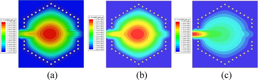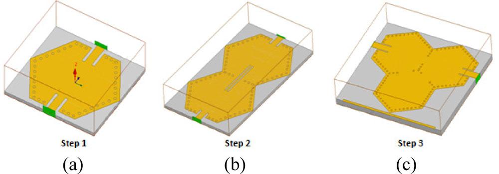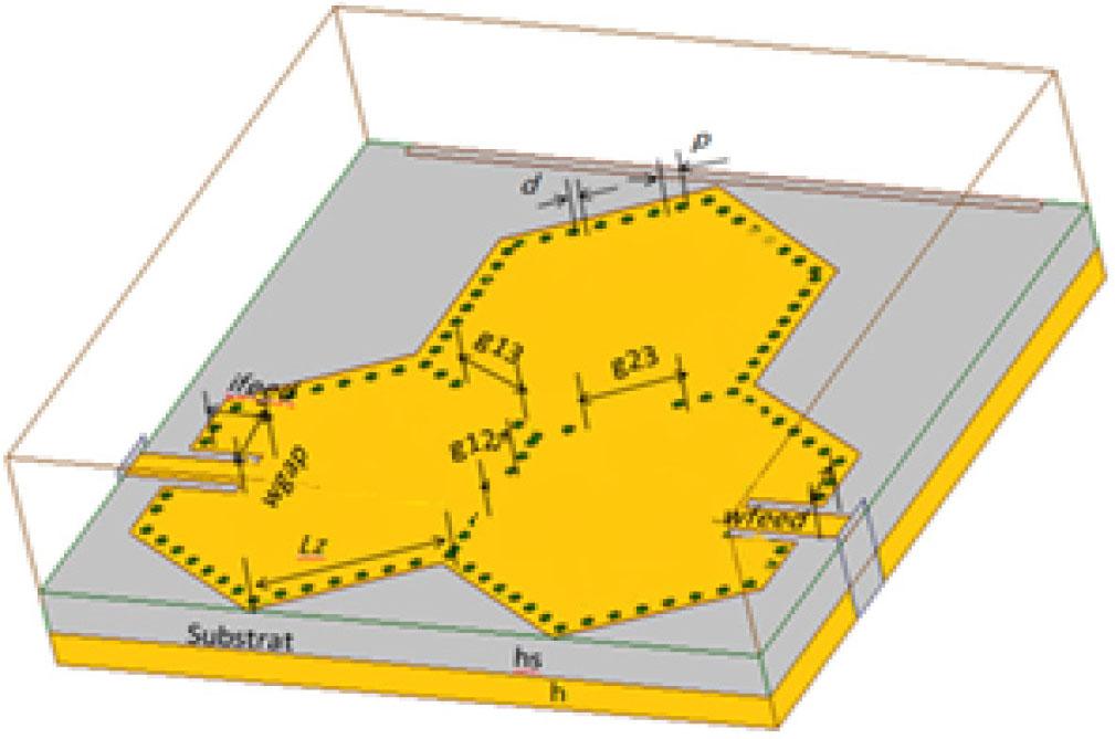 Coupling and iris widths gij of the third-order hexagonal SIW-DGS bandpass filter_