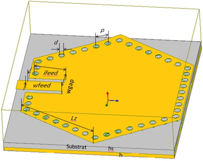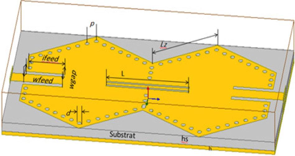 Dimensions of the first-order hexagonal SIW filter_