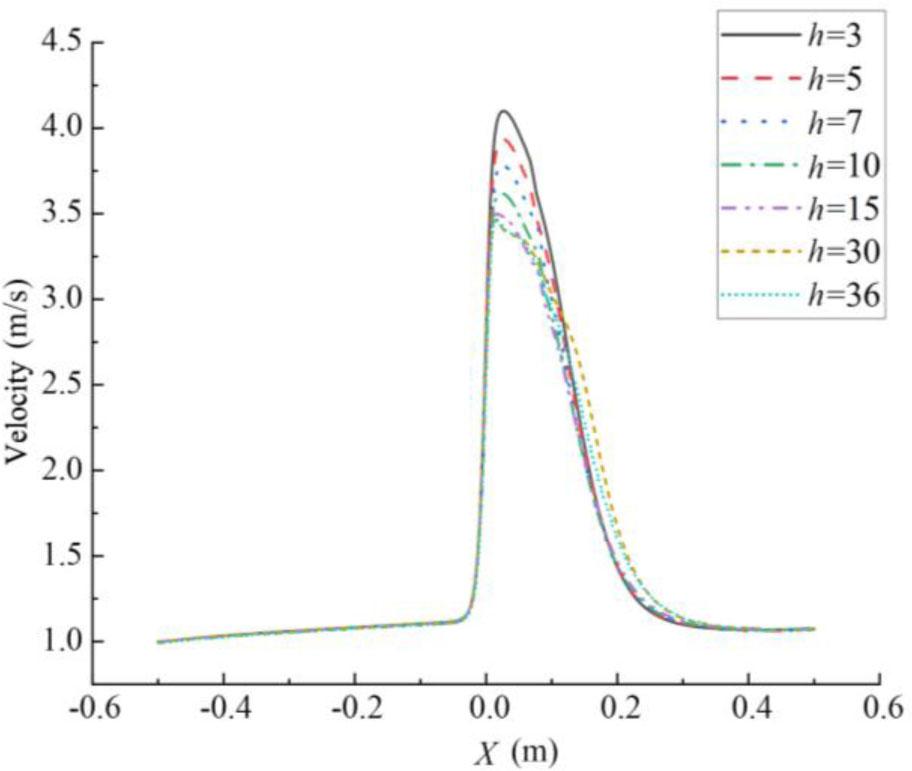 To investigate the effect of thickness on the flow field characteristics of the throttle orifice plate, this study examined the flow behavior of throttle orifice plates with thicknesses ranging from h = 3mm to 36 mm at an inlet flow velocity of 1 m/s. The structural parameters of the throttle orifice plate are summarized in Table 1, where the relative thickness of the orifice plate is defined as t = h/d.