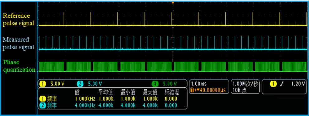 After the fout frequency is extracted in Fig. 6, the phase comparison results are quantified using the high-frequency clock in the FPGA chip. This process makes the processing of fout frequency and the selection of gate signals more convenient, as shown in Fig. 7.