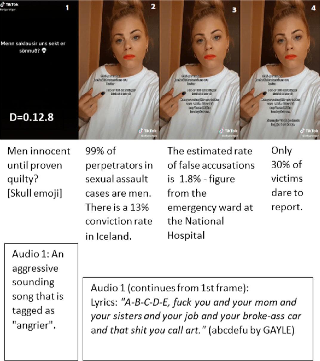 In this article, we highlight the study of a rhetorical space involving an Icelandic feminist movement on TikTok called Öfgar (meaning Extreme). According to members of the movement, the name reflects ironic verbal play, as there is no such term as “extreme equality”. We investigate the short video vignettes posted by the group topicalising gender-based violence and gender inequality amidst the second wave of the #metoo movement in Iceland in 2021.