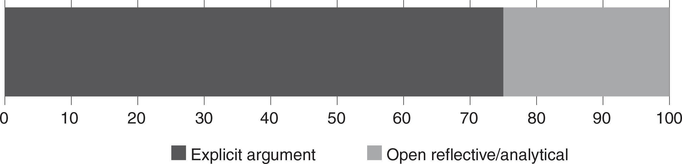 An important task for commentary journalism is to set the agenda and propound opinions. Do the columns in Nordlys express explicit arguments or do they convey a more open and analytical style? As Figure 1 shows, the specific arguments dominate the columns of Nordlys; 75 per cent of the columns are based on explicit arguments for a specific stance, whereas 25 per cent are more open.