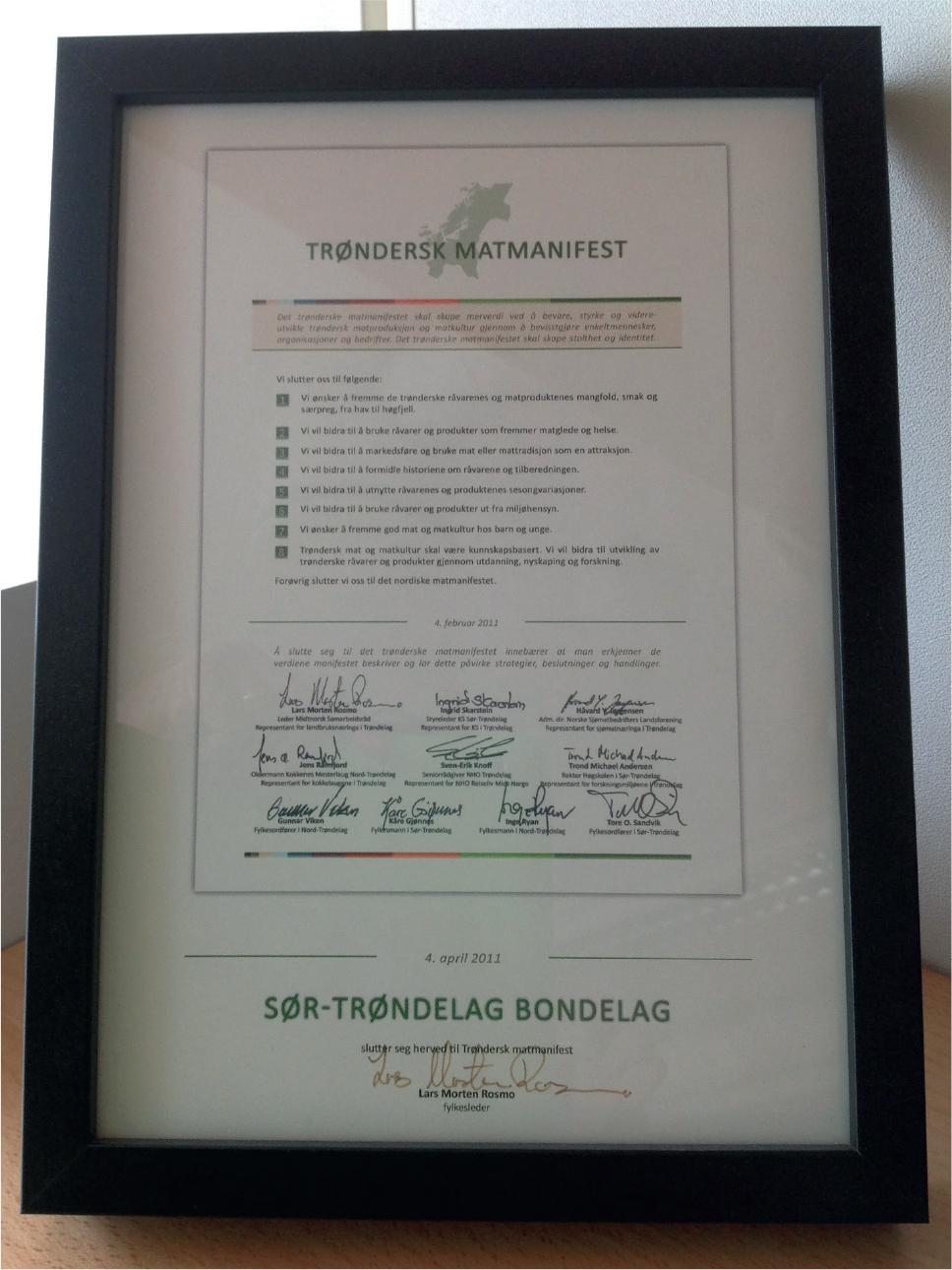 Trønderlagen’s food manifesto in the offices of a food agency in Trondheim
