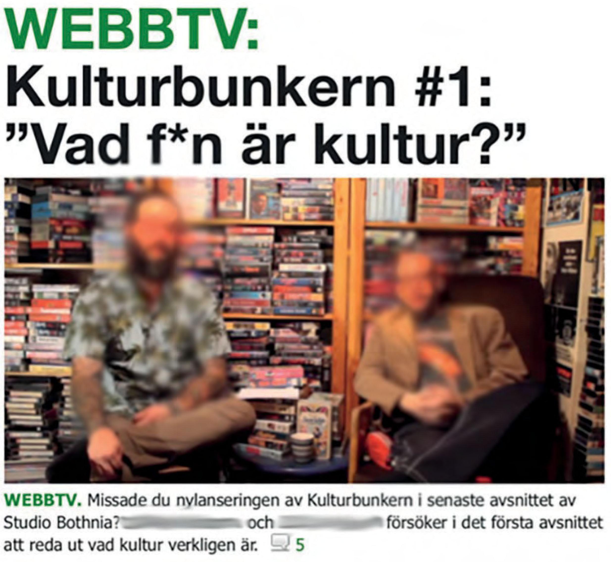 Comments: Translation of caption: “Did you miss the relaunch of Kulturbunkern in the last episode of Studio Bothnia? In the first episode, [the hosts] try to sort out what culture really is”. Published 6 October 2018.