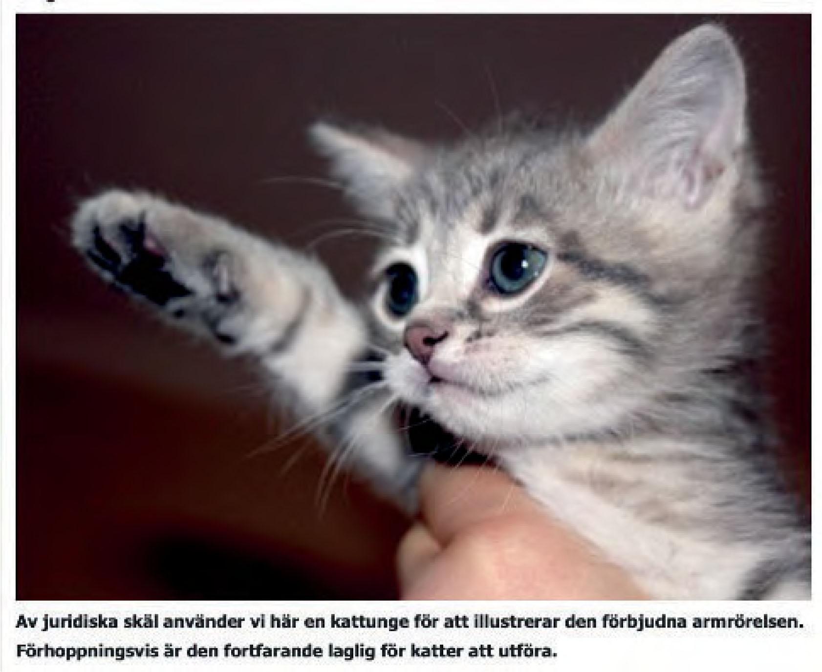 Comments: Translation of the caption: “For judicial reasons, we let a kitten illustrate the forbidden arm gesture. Hopefully, it is still legal for cats to exercise it”. Published 8 June 2019.