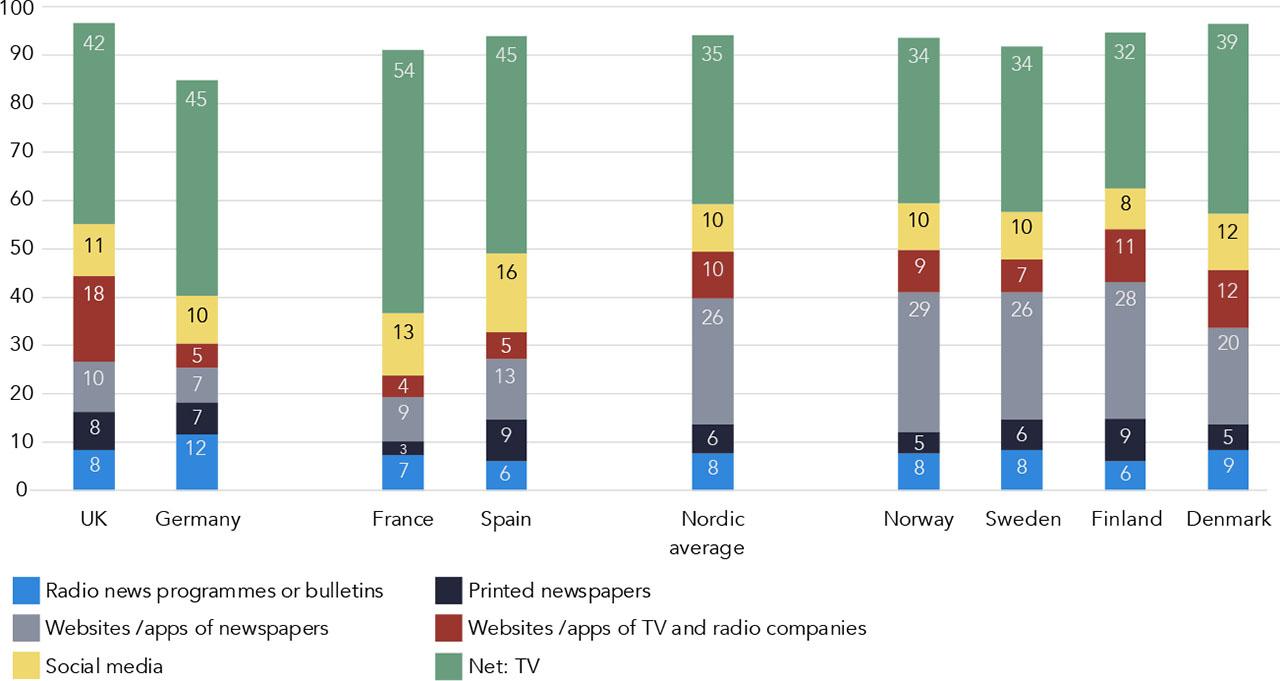 Polarisation of media in the Nordics, compound of brand scores across off- and online news media