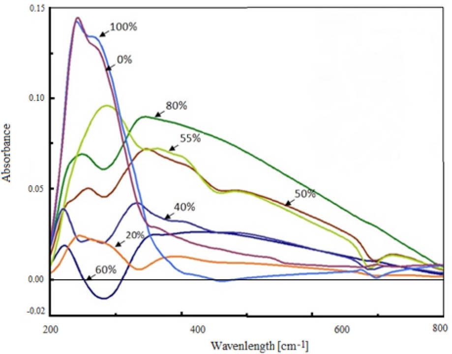 DRS of the starch:PVA films varying in composition (shown in terms of PVA percentage).