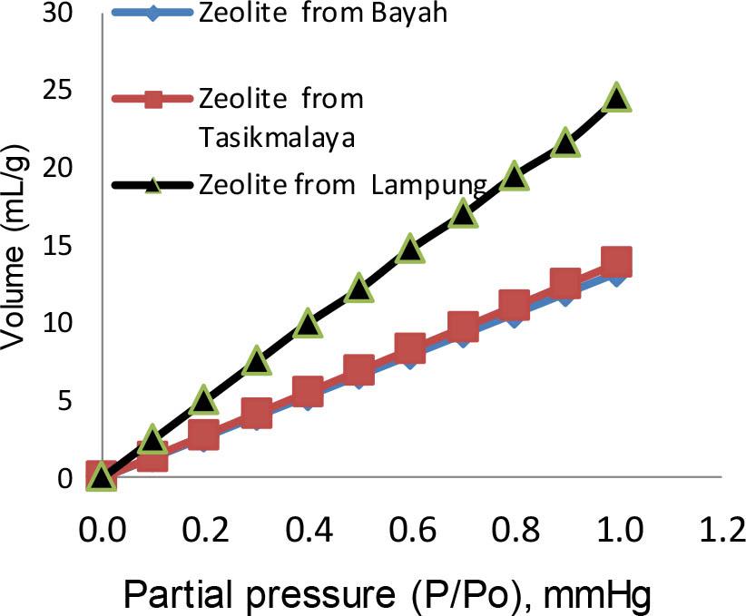 Adsorption of zeolites from Bayah, Lampung, and Tasikmalaya.