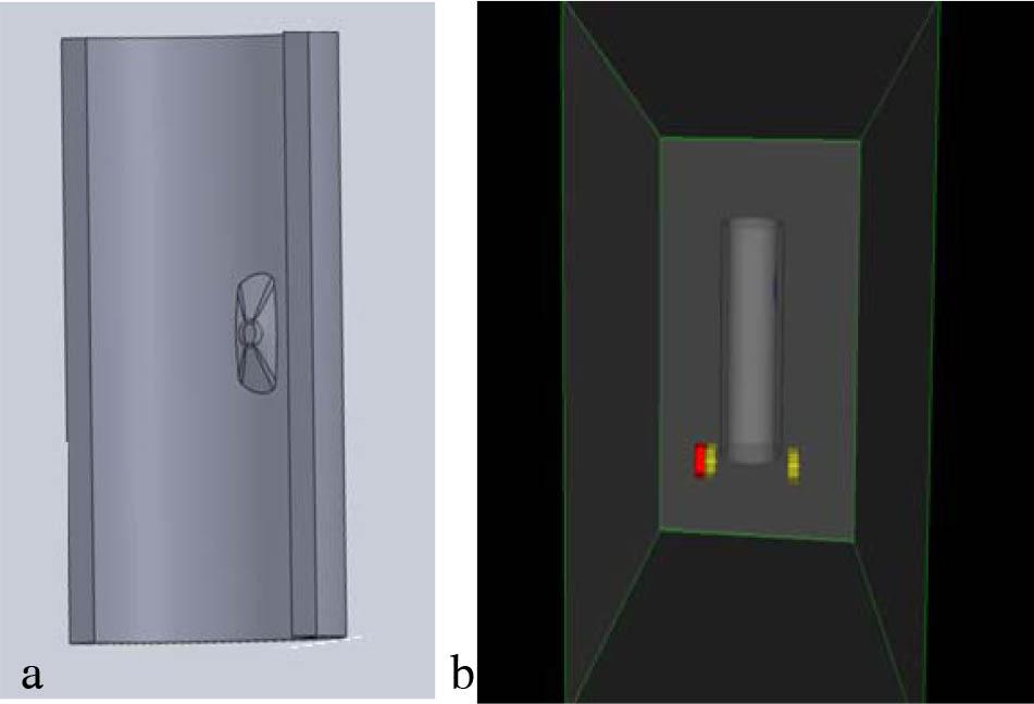 The simulation setup showing the column, collimated 60Co source, and radiation detector is given in Fig. 2. The parameters that the user can control in the simulation are the source type, the material of the column wall, the diameter of the column, the detector crystal, damaged or intact column internals, and the step of the scan.