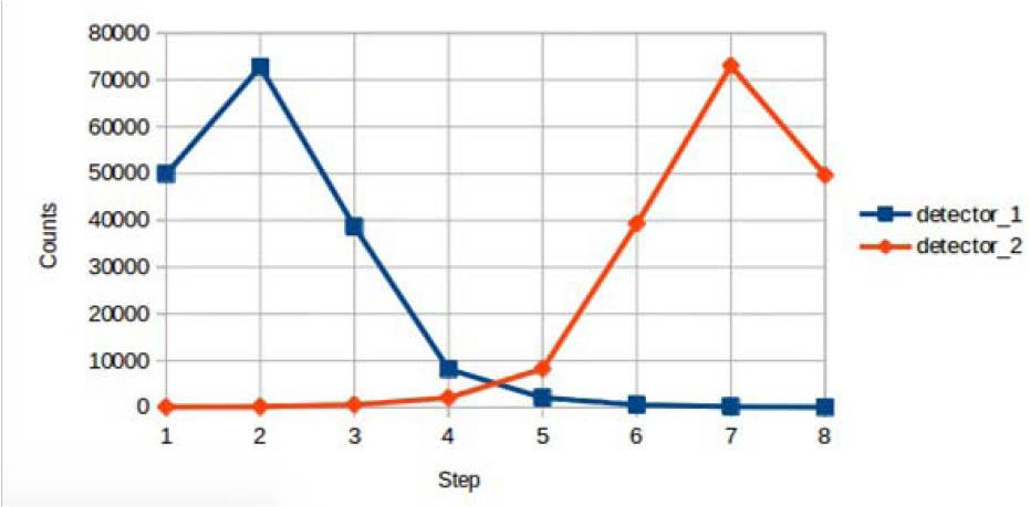 Figure 13 shows the output obtained when running the flow rate simulation. The two peaks are the responses of the detectors to the passage of tracer. The positions of the detectors and the times when the peaks were detected are used to calculate the flow rate.