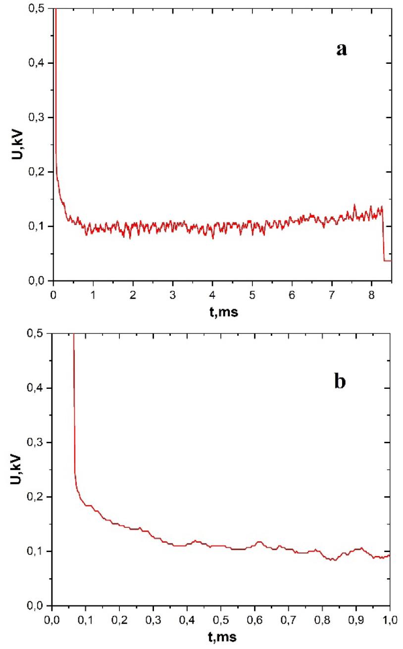 A closer look at the time evolution of discharge voltage.
