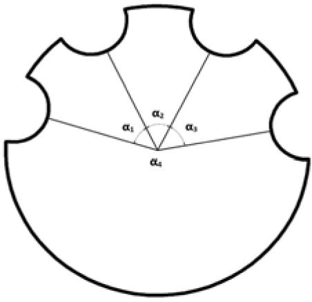 Sketch illustrating layers with critical density with azimuthal inhomogeneities α1 – 47°, α2 – 53°, α3 – 53°, α4 – 207°.