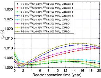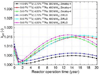 | Fuel | %233U | %231Pa | Cladding | Power (MWth) | BOC | MOC | EOC | |||