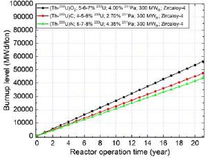 Burnup level of (Th-233U)O2, (Th-233U)C, and (Th-233U)N at 300 MWth power.