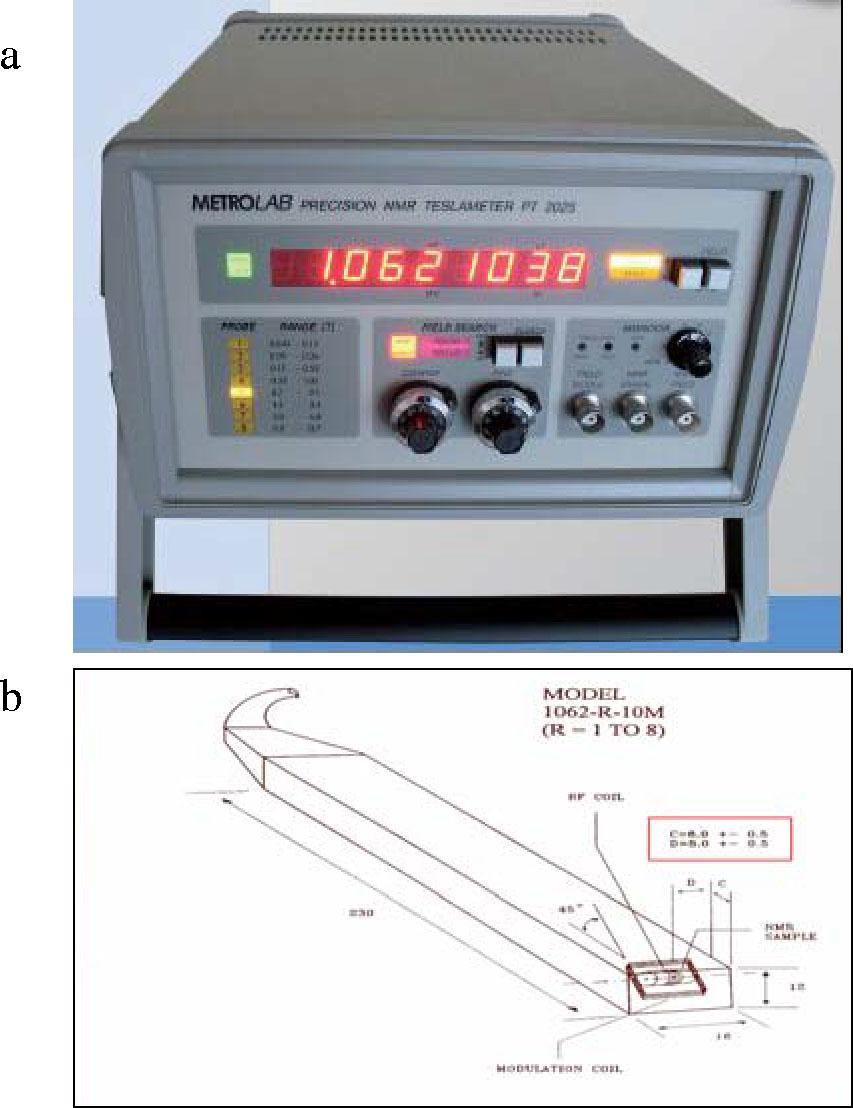 Metrolab PT2025 NMR Teslameter (a) and probe model 1062 (b).