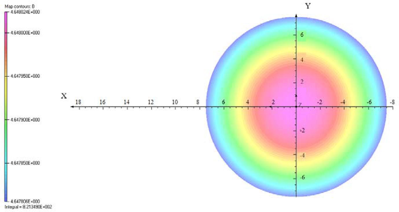 After comprehensive consideration, a radius of 250 mm is determined as the ideal size for calibrating the magnetic pole. The magnetic induction intensity is 5.016 T and the uniformity is 1e-5/cm, which is 10 ppm/cm, meeting the requirements of <160 ppm/cm. The magnetic field distribution of the uniform field space required for calibration is presented in Fig. 5.