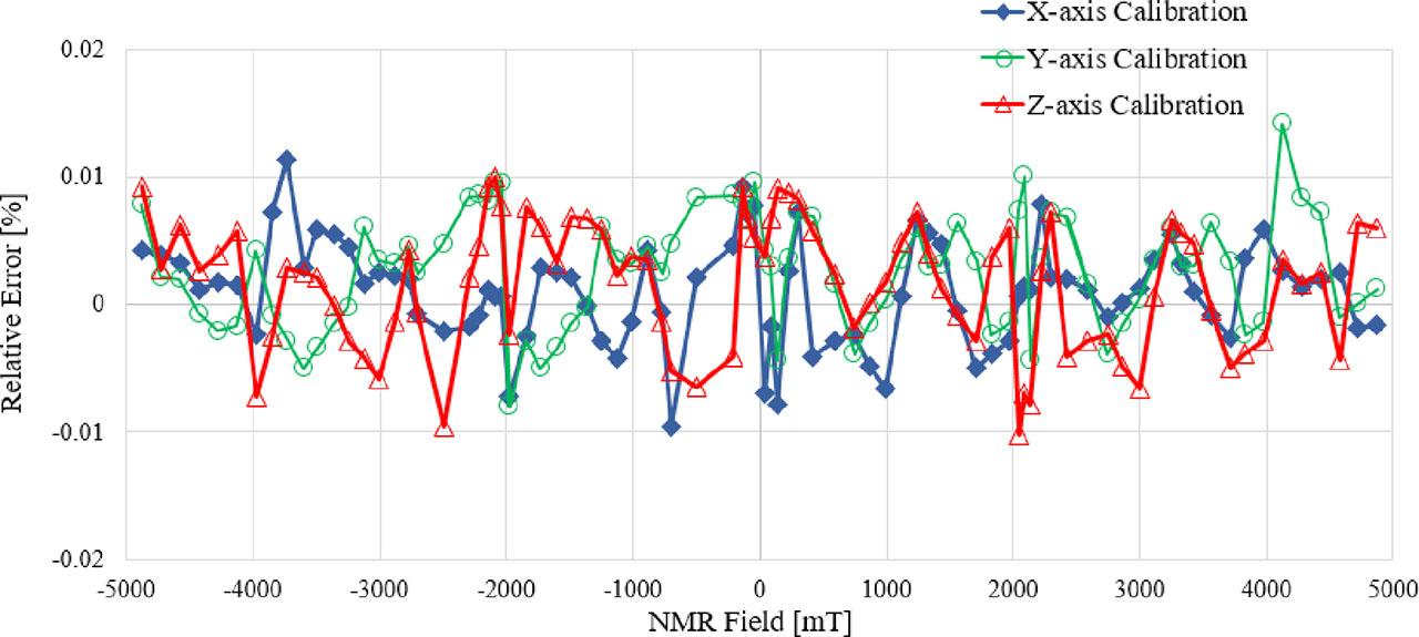 As shown in Fig. 18, the relative errors of the three-axes calibration are <0.01%. The results indicate that the calibration results are reasonable and reliable.