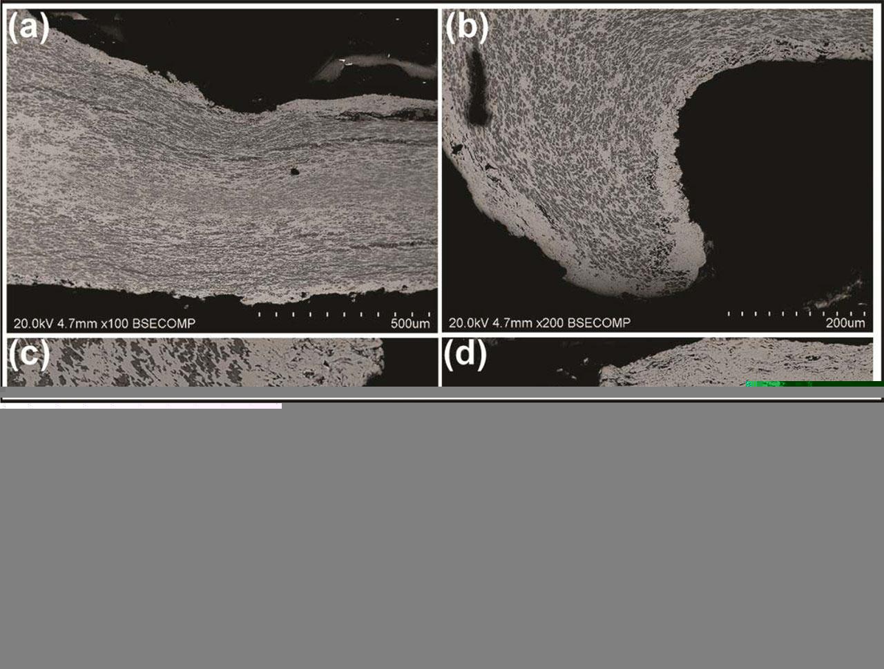 We examined the cross denars surface and cross-section. For identifying possible morphological differences resulting from manufacturing technology, corrosion, or conservation processes, transverse cuts of the coins were etched. Microscopic images of the cross-sections of coin A, which are remarkable for the presence of corrosion pits, can be found in Fig. 2a.