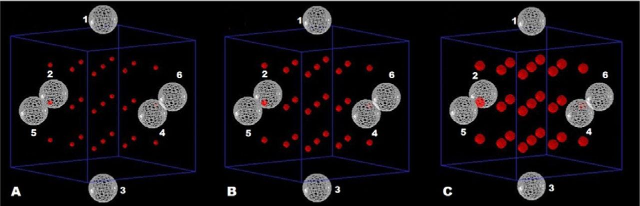 Three different nanoparticles sizes in the Lattice Box: A – 20 nm, B – 28.4 nm, C – 50 nm.