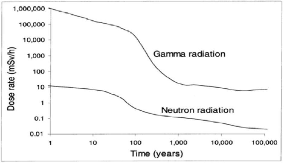 ![Accrued, external dose from drill cores of several kinds of present and future French VHLW after a 10-min exposure, 40 cm from the drill core, and as a function of time (p. 352 in Ref. [9]).](https://sciendo-parsed.s3.eu-central-1.amazonaws.com/68a8bde5afc50a4de0964f13/j_nuka-2025-0009_fig_006.jpg?X-Amz-Algorithm=AWS4-HMAC-SHA256&X-Amz-Content-Sha256=UNSIGNED-PAYLOAD&X-Amz-Credential=ASIA6AP2G7AKL7IWZU34%2F20260113%2Feu-central-1%2Fs3%2Faws4_request&X-Amz-Date=20260113T020502Z&X-Amz-Expires=3600&X-Amz-Security-Token=IQoJb3JpZ2luX2VjEC8aDGV1LWNlbnRyYWwtMSJGMEQCIBemo2RDz6JQyP5ax7S4n3JssOwrmcV56ms4Gio6Jb7wAiAQmviEWOEzFmbIStQp6wAZhoPdykJDbgqJFF3fwSzktSrFBQj4%2F%2F%2F%2F%2F%2F%2F%2F%2F%2F8BEAIaDDk2MzEzNDI4OTk0MCIMBMOTAGNK1cjuT8KMKpkFiFBk11mXU9LcbYtVt8ipmxd%2FobrZEDCf1EFuRId2YrsQrv8BESATmNIaxR5Eoha5L8bPyOhpAVNPKRTkFGzpNHIrWmeMQC5qu%2BPBNy%2FEy9EslC24PfbY%2FdKQz8MxroD2uQqGhtBonh%2BnLvci5NSURzuq7zG4ow3%2ByMtCE9GVw%2FJM20LfZxb6qotHiVLAvp7cjx1rqR%2FAOF7FpZObgF5z2vVeSIBSbwmUPdVk7KknxBSGAPUCWCOOhka0EwtqTD1Jz4SLjMcf%2Bu3deX%2Ft6Cu%2B4TDb3lyqaNRoupT8BkIX%2FIc8ikZ6opDRzjmcCEv89asWmUVIVWlV991RWJqI9LSO8lrOsaXi%2FShaUWUFpgWPtUtvb8lVXGt6ePGkQMQiiWY9hRkzpn9tD1lAOE6%2B%2BOhCO7%2FEslqspJ8ommnsGmdzm2gfzKcxLQUOAviv7gWjrp6avAPMEAx5GArhFnSzTXYfDoBBN1%2Bu906O14QHxmyji%2FKlNVubcpsyTRG81Vo0kURt2nxu7%2FZ3XoLFUgEGQeQDYDOCreU%2B6H0RrWXgzt8f%2FwGADVzL8bP7fhVeBFKittLNEDUGNAMrV3fUsq1Y%2BPf0JHh%2BkEA2OCFR%2BuEsLGL0JXjH9shYseA%2BiOs%2BFc4xvKjb%2BHlctfHzfwjQVKoYrZg2Nf0zSmJ0sQVe888D1YJbFG6mBoHQHCas93HtpTgYAeRz8TcNJvNlqWAI4U4e8gwdC64Xd8x7Ncyij1QpGV%2FXMKrCXP6MH%2FSqec1hyImjHEbiAypKYld%2FsByvRq4Kqos1GS3%2FbOoAf1Glt91dAkAYlI4rSOdva9kdngGtS7fjRjpKYf3jypw%2FujjwQ1lbnXBjYLJ3497FDdkiJBNef3V2m4TlpEWZldUew%2Bgw5PmVywY6sgExAzY4UvmZd%2FcqRhwjcR6WoCEvgcP2gor7oxrBshN9zBnZ4%2FZGnbUOB4ub8%2FYNm99S5rMGoVKVS0MoXiPf8X0Rcc0NlyyX37x%2FVPtNjHokaG9w4k0gA1S2jfAMtDJ%2FEEHXlSsuNf3x5HFWAgs9eSnW5x0HxJlJfNhp2Y10ZtWdxV5ASo%2BSqa0lSaH%2FbBLLZHwK%2BGXa8HJOUj%2FwQ%2BrvMaXml%2B1rATRWBaRZhDn9PtiFjIYo&X-Amz-Signature=b1d02d82f1268d820ec7a4b4bed1fc83b0a2cd29d0aeb8c3dc3e3fb6c76becb7&X-Amz-SignedHeaders=host&x-amz-checksum-mode=ENABLED&x-id=GetObject)