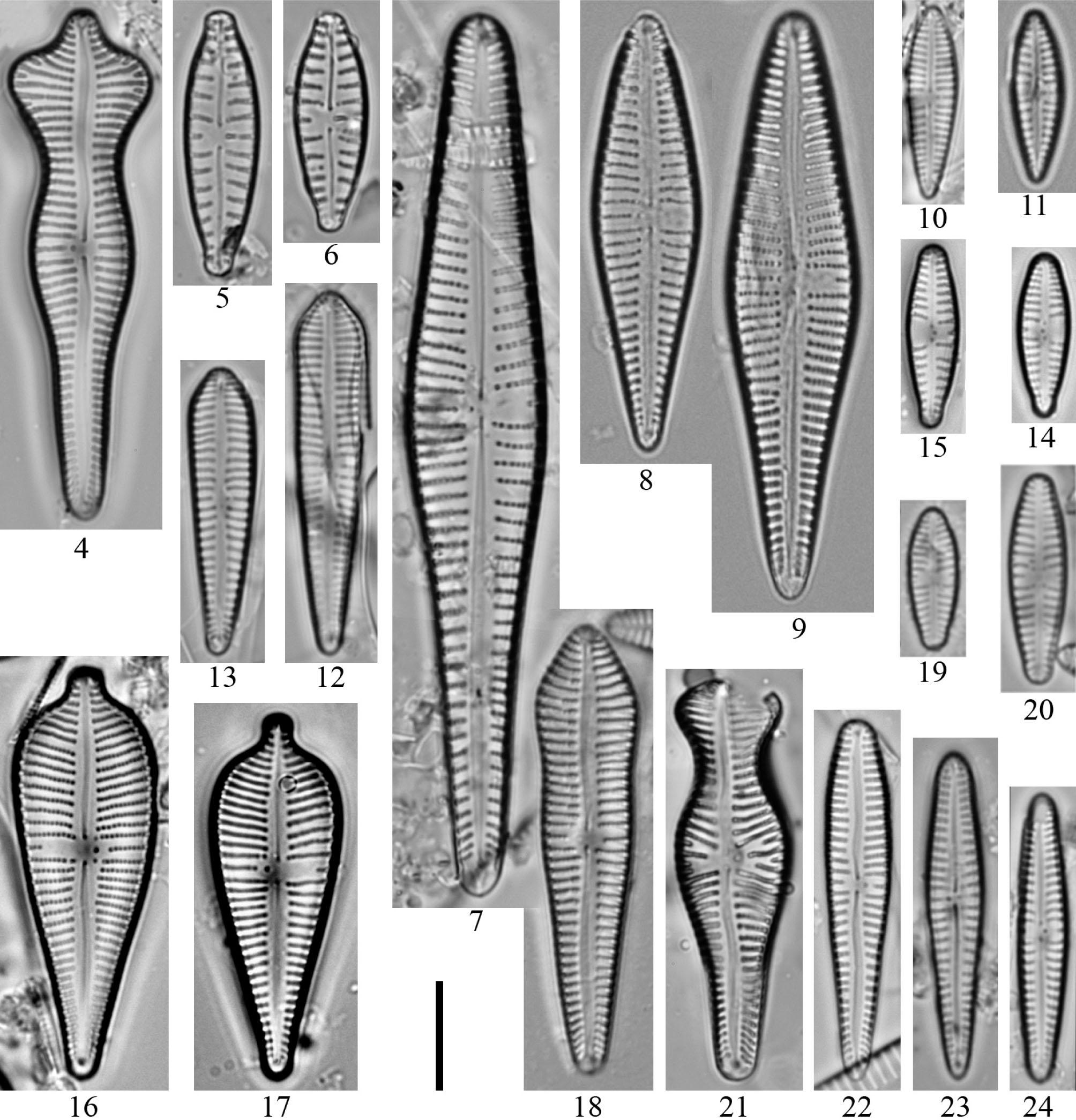 Dimensions: 17.9–22.8 μm long, 3.5–3.8 μm wide, 18–19 striae in 10 μm.