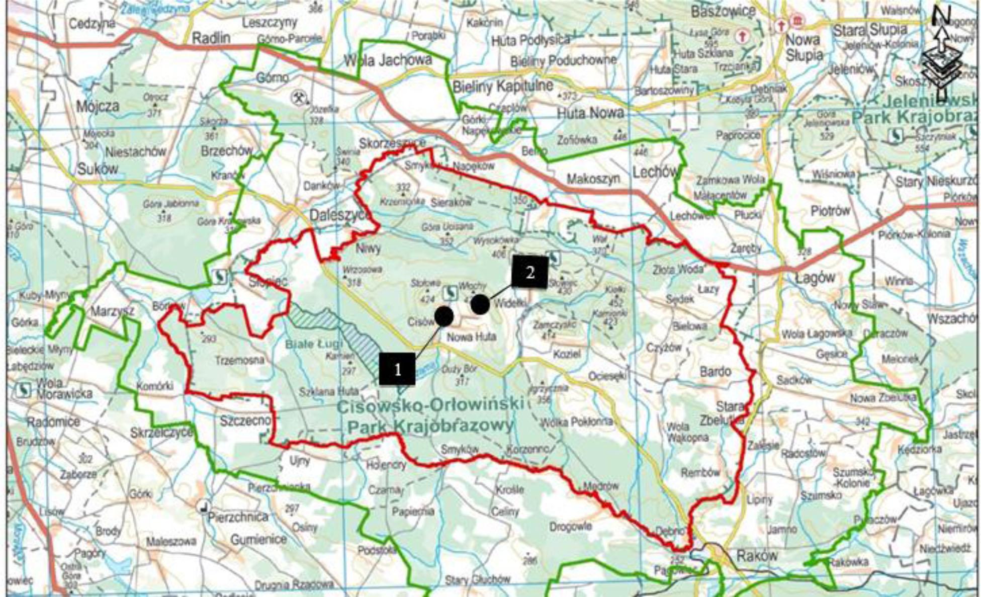 Occurrence of the density index (WD) in the range of galls found on the examined leaves of Fagus sylvatica L_, that is, common beech at study site No_ 1 (the Cisów Reserve) and No_ 2 (in the forest used for economic reasons in Widełki)