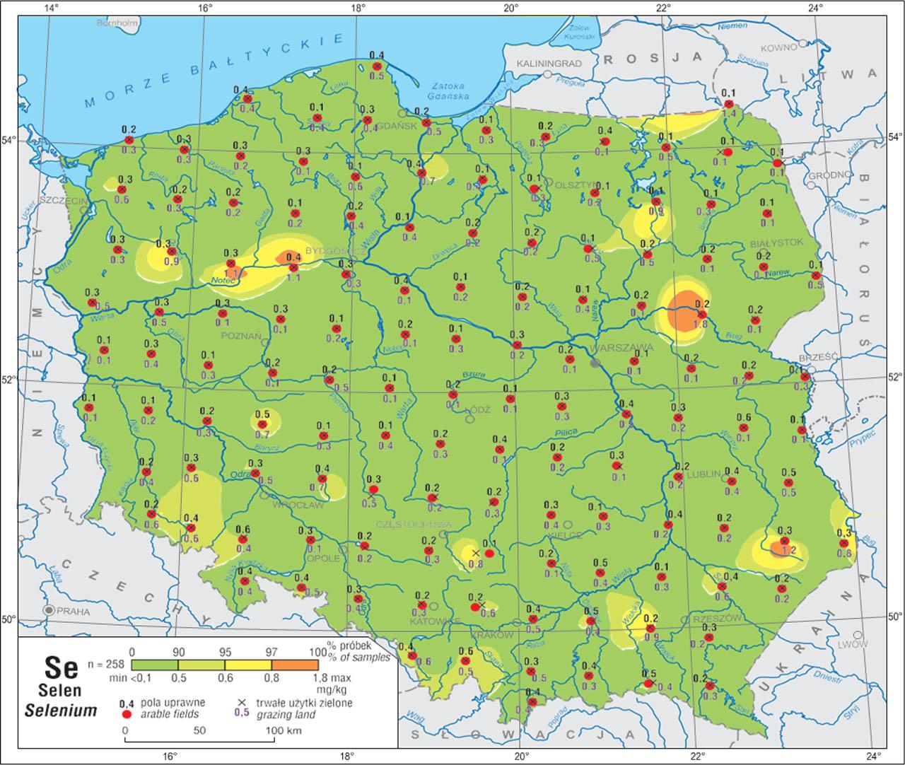 ![Selenium content in soils across Poland (0.0–0.3 m)[Pasieczna 2018]](https://sciendo-parsed.s3.eu-central-1.amazonaws.com/64726a78215d2f6c89dc72e9/j_oszn-2021-0013_fig_001.jpg?X-Amz-Algorithm=AWS4-HMAC-SHA256&X-Amz-Content-Sha256=UNSIGNED-PAYLOAD&X-Amz-Credential=ASIA6AP2G7AKHLVY5MLQ%2F20260228%2Feu-central-1%2Fs3%2Faws4_request&X-Amz-Date=20260228T133338Z&X-Amz-Expires=3600&X-Amz-Security-Token=IQoJb3JpZ2luX2VjEI3%2F%2F%2F%2F%2F%2F%2F%2F%2F%2FwEaDGV1LWNlbnRyYWwtMSJHMEUCIFN8FXo4rqiId4cLCCbRVuk%2Fcw7MogKnNmBZ8KFjgMqBAiEAvFryefIW8ZqTl1v44Fej118Ojqnmn4IEWjlbnuwV0kYqvQUIVhACGgw5NjMxMzQyODk5NDAiDJbUO8HPqt2Vq0f2SSqaBWHudX2KAMjVLo959EfT7CxV5SrtuDv7gKh4thsVi2720wG75aRDZOCOnRuyktIWGkhv73Q0Z03qtSzfrKXHgF8ocsbAieQYJ6wCv2N3p3Zs%2BIyxAqvlnqqNK%2Fzq0HbdKsH4mPFYmtBCO4UergEhFn6Q4ne8Qcdp5mR%2BFLgFtYBgdG%2Fn6AhOC348XVI4t7o5uEiwpD%2BXszc0MC6AxVKKvHfgRLsiMKF0Aimkk7FpwlBOH%2F1BEbDwUE0u4tGyTA2ymLQhML%2BbhMiLTFizshbpH%2B9O6b415cnXX7KswResVAFb4GrWDMRfy%2BxHo2wABdttqeCsYjDDEIDDuk%2FGAzGVb3bVlgoNzTPCox%2FujjmWvthYO4UrJj8zxUwqj76unq7sKz%2BAHIk71jrGuMOHqelwMwKui1pi1jomJcgHAr%2BnoE4CDRtI3O3zWWdTd4vRf0flU7RdZ5zAMIi9A21X3FGT5XkB4trWMhJv7z1Lqt1Xj7LhRmC7FDhLc5dgIir0jXEs8tySCr5UozHt%2B56qkDJOw%2Ffka1bLpn6XKte6VR7DHY3sV%2FDY3QSqHg6oD1YssMuuvkA3s2k0NT%2FLoM21suLu%2BVrc5K8SeN%2B5I7ncxG4yysFRxO0qeHshVDi3sc%2B4Ky15DUKXzyVtGxwacB%2BRPkqRGdmAz8CDP57KYQSfSxWpPdt0GnROrG4YYQy6gal1oUyM746ES8P394w09ixF33LGE8XXq5UM1W5tk6o4SbL3FqDyVjMeoShtKSkX9jlJoiHGO9h1jTpYcXF2l2d65CNqeRAS4SxGm2OfYY0am4yqfmwxVJArE1rmTn8uV6y0uFE3IYnEC32lwXFdya7sCPVCl2PEGEjl4Gq%2F1DLiuH4SVe0Y%2F3dDQqGqfO3EnTDOy4vNBjqxAd0u4ekbc1fQ2%2BgIH10jK0S01Q6De4gq1JxEJ2Hy74%2FdfnVjSs8nVd19qsitK2tWcqALCw3YfyR2z5c%2Ff9itOCtc62%2B1gDPPEhgo%2FILf9yGZCKmOxjB4giEuTKDTFDkOYfjYFWv47rGjhp%2B%2BNF7foO8t6Qeez7svxAGWBIVISa2aLHBP%2BFdpy2fghkZEPJZUBaki2kHFQaso74e6Sg8%2Fwx3v7hEWzME9BY7vB6%2F%2BkgHcwQ%3D%3D&X-Amz-Signature=6b4d710b41778cca980791926116303512f7f14ac6481ff8658af4201284578e&X-Amz-SignedHeaders=host&x-amz-checksum-mode=ENABLED&x-id=GetObject)