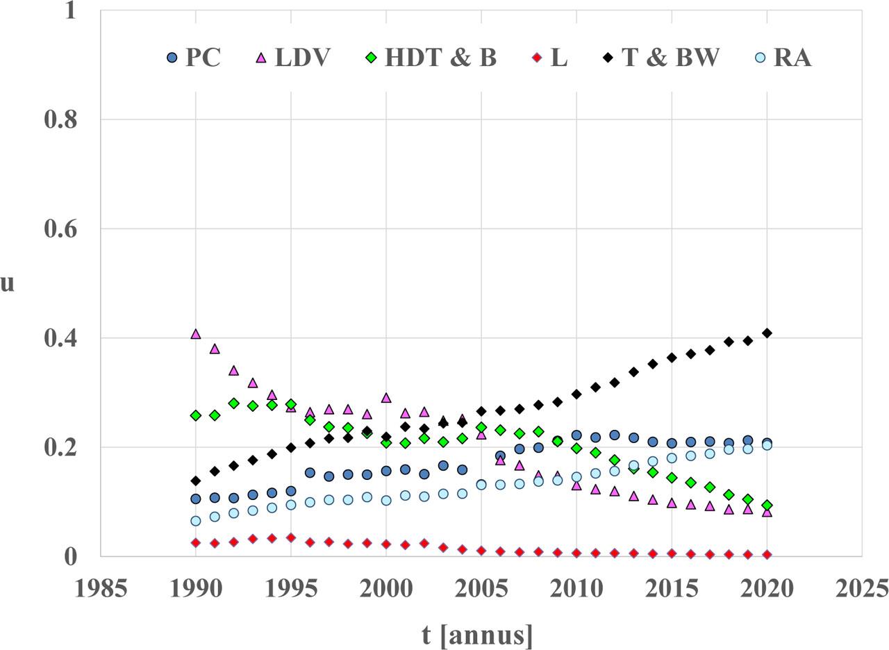 Figures 17–24 show changes in the energy emission factors for the analysed pollutants from each road transport category and emission sources under this study, in the period of 1990–2020.